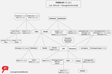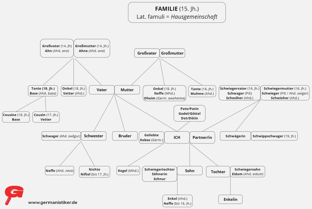 Wenn du auch immer nicht so ganz durchblickst, wer jetzt nochmal wie und mit wem über wie viele Ecken verwandt ist, dann bist du hier genau richtig! In diesem Blogeintrag stelle ich dir alte deutsche Verwandtschaftsbezeichnungen vor und erkläre dir, woher solche Begriffe wie „Eidam“, „Oheim“ oder „Base“ eigentlich kommen…